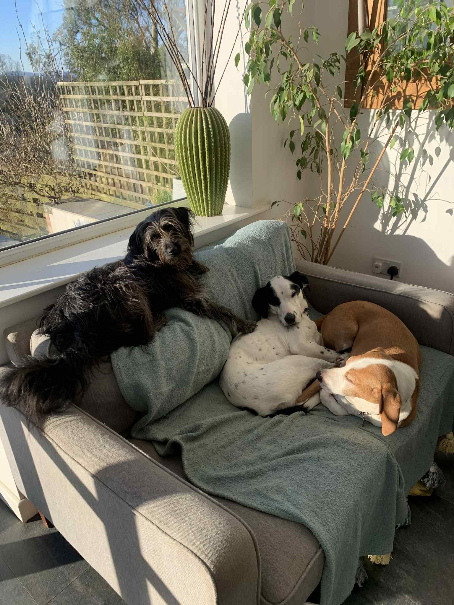 “When Olive came into our lives nearly two years ago, it felt like fate. I don’t even remember how exactly I came across Ana, but one day while scrolling on my phone, Olive’s photo appeared—and I simply couldn’t stop thinking about her. There was something about Olive and something about Ana that drew me in. After talking with my husband, we decided to adopt Olive, and I was over the moon. We already had our dog Alvin for five years, and now we were welcoming another soul into our family. I still remember the day Olive arrived—it was during a heavy storm here in the UK. We couldn’t even take her for a proper walk to meet Alvin, so she came straight into the house. It was a new and intense moment for all of us, but it worked out beautifully.